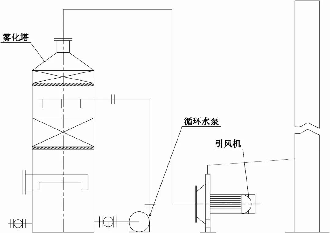 利用水滴和颗粒的惯性碰撞及其他作用,让液滴和相对较小的尘粒密切接触或结合产生容易捕集的较大颗粒的装置。废气由风管引入净化塔,经过填料层,废气与氢氧化钠吸收液进行气液两相充分接触吸收中和反应,酸雾废气经过净化后,再经除雾板脱水除雾后由风机排入大气。吸收液在塔底经水泵增压后在塔顶喷淋而下,最后回流至塔底循环使用。净化后的酸雾废气达到地方排放标准的排放要求,低于国家排放标准。